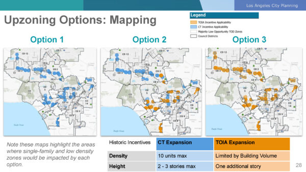 A slide showing the three Approach C options, L.A. Department of City Planning